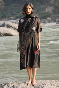 This elegant stole features allover hand-embroidered floral motifs, paired with delicate scalloped edges for a touch of sophistication. Its intricate craftsmanship and timeless design make it the perfect accessory to elevate any outfit with refined, feminine charm.