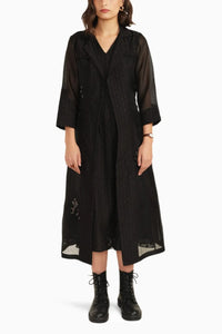 Black Embroidered Organza Jacket with Plain Brocade Dress