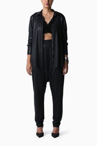 The essential Jersey shirt cut in a slinky jersey feels like liquid on your body. It is that one elevated essential that can take you from casual to glam. Made for a relaxed fit and is detailed with a wide cuff and shiny button details. Button it down or leave it open for a cool overlay shirt look.