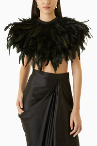 A statement Black Feather cape that steals all the attention. Layered with soft feathers. Perfect to wear with your saris and skirts.