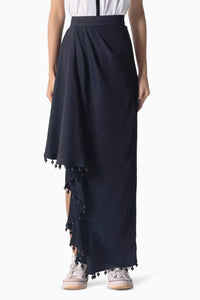 Fio Skirt is an High-waist midi skirt made of Micropoly fabric. Asymmetric hem. Invisible side zip fastening. Pleats on the waistband falling flawlessly towards the hem in a asymmetric pattern .