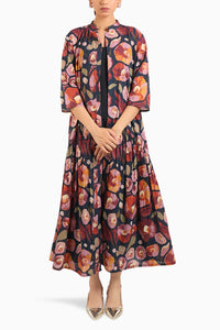 Make a statement with this black floral cotton shirt dress, layered over a soft, comfortable slip. The striking floral print adds a touch of drama, while the lightweight fabric keeps it breathable and easy to wear. Whether you're heading out for a dinner date or a daytime event, this versatile piece blends elegance with everyday ease.