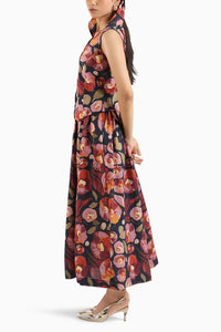 Black floral printed waistcoat paired with a matching long skirt. Made in soft cotton, this set is stylish yet super comfortable. The waistcoat has a smart, fitted look with button-down detailing, while the flowy skirt adds elegance and ease. Perfect for festive days, casual gatherings, or when you want to stand out with minimal effort.