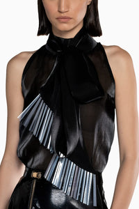 Black Fluid Organza Fringe Top