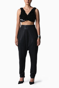 The Gill Blouse is that classic sexy blouse you need in your wardrobe. It is hand embroidered with round sequins of different sizes. Designed with a deep V neck and a curved shaped hemline. Closes at the back with hooks, it works as a great option to either wear with your saris or with pants for a cool modern look.