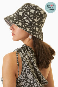 Featuring the Black Goa Bucket Hat, crafted with a rounded, flat-top crown and wide brim from block-printed cotton fabric outside, lined with sturdy canvas for durability and comfort.