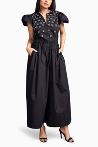 Featuring Black Jumpsuit With Embroidery by Deepika Arora. A backless jumpsuit with cutwork embroidered yoke.