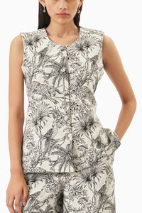 The Black Jungle Jacquard Sleeveless Buttoned Jacket is a striking piece that combines bold patterning with sophisticated tailoring. Crafted from rich jungle jacquard fabric, this sleeveless jacket features intricate detailing and a deep, textured design. The buttoned closure adds a structured element, making it both stylish and versatile. Perfect for layering over your favorite outfits, this jacket brings a touch of exotic flair to any wardrobe, ideal for those who appreciate unique, statement-making pieces.