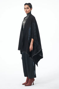 Fabric- Handwoven Merino Wool Felt Color- Black Components- 1 Product Code- SVEMEDI25W Knitter's Cape-BLACK