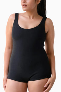 Introducing the Black Laguna One Piece, crafted from Compressive Fabric for exceptional sculpting comfort. With a stylish round neck in both the front and back, this piece offers a flattering fit. Enjoy extra coverage at the bottom for added confidence, making it the perfect choice for beach days or poolside relaxation!