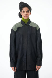 Fabric- 100% Silk, Handwoven Merino Wool Color- Black-Lime Components- 1 Product Code- SVEMEDI25W Maker's Shirt-BLACKLIME