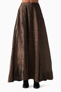 Featuring a handwoven metallic striped lehenga skirt with pockets and box pleats for an added flare.