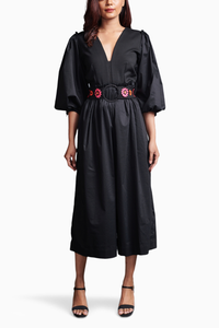 Black Monochrome Jumpsuit With Belt