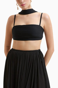 The Morgana crop top features a delicate hand-pleated bodice, a flattering neckline, and an adjustable back tie for a snug fit. Its versatile design makes it a stylish and functional addition to any wardrobe. Style this piece with your wardrobe staples or the Morgana skirt to complete the set.