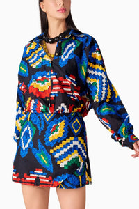 Featuring the Black Multi Ikat Sia Skort from Saaksha & Kinni's Nirah Collection. This Aztec print, high-waist skort combines style and comfort, offering a chic, contemporary look that pairs perfectly with any casual or semi-formal ensemble.