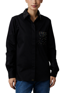 Black Multicolor Swarovski Studs Full Sleeve Shirt