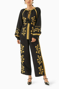 Lightweight linen-blend resort pa nts Designed with bea utiful flora l embroidery a nd grosgra in ta pe deta ils. Fea turing a n ela stica ted wa ist with dra wstring ties, side pockets a nd cropped leg length. The perfect resort look, ma tch it with our resort top.