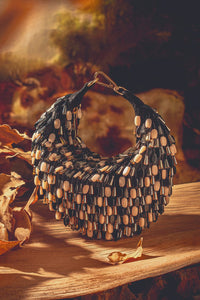 The Nano Boat Bag exemplifies meticulous craftsmanship with its exquisite design, featuring a detailed arrangement of stone and crystal beads that radiate opulence and charm. The all-over stone work enhances its glamorous appeal, ensuring it stands out as a distinctive accessory for any special occasion. Handcrafted with genuine artistry, this bag is available in elegant Black and Peach hues, adding a touch of sophistication to your ensemble.