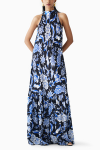 The Black Pineapple Halter Dress crafted from our stunning Vegan silk fabrication, trans-seasonal, is a statement piece. Made in our Black Hand Drawn Pineapple print, this has high neck collar and halter sleeves. Featuring a relaxed silhouette, this piece has a bow in the back. Wear it with heels for an elegant look.