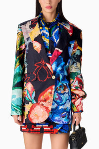 Featuring the Black Prime Gaia Blazer from Saaksha & Kinni's Nirah Collection. This floral print long-line blazer with patch pocket detailing combines modern style with a touch of elegance, making it a versatile and standout addition to your wardrobe.