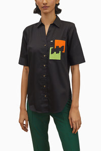 Black Puzzle Pop Embroidered Shirt