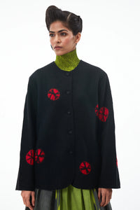 Fabric- Handwoven Merino Wool Felt Color- Black-Red Components- 1 Product Code- SVEMEDI25W Classer's Jacket-BLACKRED