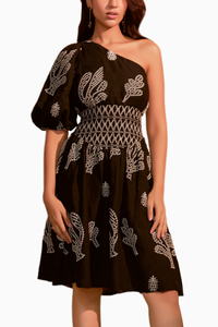 Made from 100% linen, the Sierra Mini showcases our signature broderie anglaise embroidery in striking black. With its one-shoulder design, bell sleeves, and elasticated waistline, this fit-and-flare dress exudes a charmingly coquette vibe. Effortlessly blending elegance with playful details, the Sierra Mini is perfect for adding a touch of sophistication to your summer wardrobe.