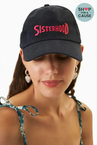 Featuring the Black Sisterhood Embroidered Cap, showcasing eye-catching typography embroidery on the front. This baseball cap is crafted from 100% cotton fabric, designed with a visor and an adjustable strap at the back for a comfortable fit, blending style with practicality effortlessly.