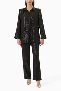 Featuring a Starry collared sequinned tunic with padded shoulders, designed for a sleek and straight fit. This set includes matching pants and is the perfect choice for adding some glamorous flair to your party look.