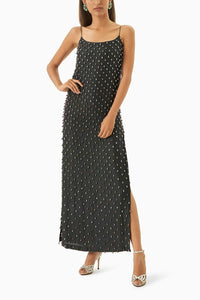 Embellished with luminous crystals, this enchanting dress has side slits that add a sensual demeanour to the design and brings out your graceful side.