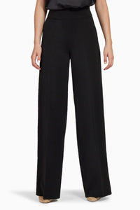 Featuring Black Stretch Suiting Wide-Leg Trousers by Refined Revolution. These high-waisted trousers, crafted with 90% polyester and 10% elastane, offer comfort and style. With a wide waistband and invisible side zip, they ensure a perfect fit.