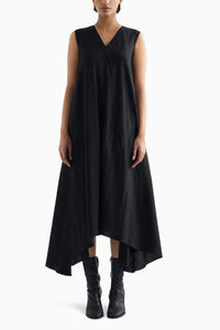 Discover the refined elegance of our raw silk bias black dress, designed with a focus on sophisticated details. This dress features intricate seam detailing that accentuates its sleek silhouette. The side seam pockets are beautifully finished with our signature shibori fabric welts, adding a unique touch of artistry. The asymmetrical design enhances its versatility, making it a stunning choice on its own or when paired with our exquisite capes. Perfect for both formal occasions and stylish daywear, this dress effortlessly combines luxury and modernity.