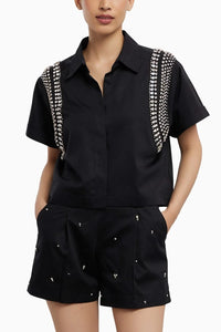 Black Swarovski Button Up Shirt