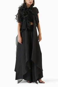 Discover the Black Vanessa and Juliet Coord Set, a mesmerizing duo in luxurious organza. The VENESSA jacket, adorned with delicate tulle.