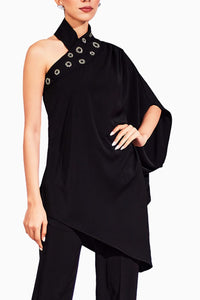 Vera one one-shoulder top is classy and minimal in one package. Tie around the neck with one side sleeves making an everyday statement. Embroidered neck with front neck closure for extra ease in the soft crepe. Pair with vera pants to complete the look.