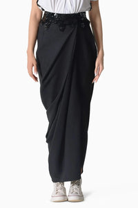 The Wave Skirt is that one sexy skirt that takes you from day to night. cut in crepe ,with an embroidery detail on the waist Which Makes the skirt universally flattering for all body types. It Closes on the side with a concealed zip and has a slit down the side.