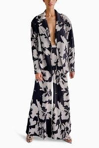Featuring a digitally printed black and white oversized bomber jacket with printed palazzo pants, tailored in crepe fabric.