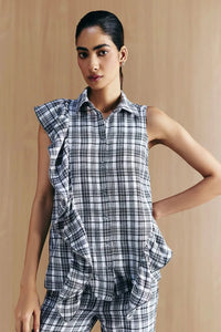 Designed with asymmetric frills and edgy zipper detailing, this check shirt adds a unique flair to any look.