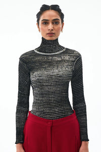 A sculptural take on a skivi achieved through hand crafted shibori, this high neck top features fluid texture that contours your form. Crafted in Silk and dyed in shades of black and white, it adds depth to your look making it an easy to style staple.