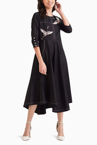 Embark on a journey of style with our Wings Dress, featuring exquisite 3D bird embroidery that takes flight on a canvas of elegance. The contrast stitch lines accentuate the artistry, creating a captivating A-line silhouette that flatters every body type. Elevate your wardrobe with this enchanting piece that's not just a dress but a poetic ode to grace and individuality