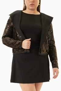 Prepare to dazzle in our beautifully crafted sequin jacket with oversized satin lapels featuring adjustable waist fasten hooks in black with imported ribbon finishing and black satin lining inside.