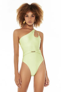 Make a bold impression with the Blaire One Shoulder Swimsuit. Designed with a sleek asymmetric neckline, a gathered waistbelt that enhances your silhouette, and finished with elegant gold chain detailing for a touch of luxury.