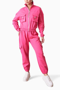Stand out in the style of our hot pink fleece coord set, featuring oversized pockets and sleek silver button details for a fashionable look.