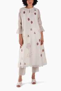 Elevate your wardrobe with the stunning ivory Tunic, offering a neutral base that allows the vibrant red hakoni print to stand out. Made from cotton chanderi fabric, it promises comfort and elegance. Adding depth and texture to the ensemble, the stripe organza pant brings a contemporary flair.