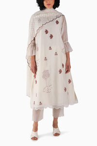 Elevate your wardrobe with the stunning ivory Tunic, offering a neutral base that allows the vibrant red hakoni print to stand out. Made from cotton chanderi fabric, it promises comfort and elegance. Adding depth and texture to the ensemble, the stripe organza pant brings a contemporary flair. The dupatta adds an extra layer of elegance and versatility.