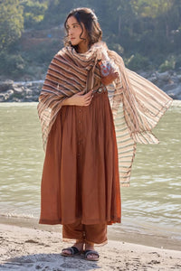 This Block Printed Striper Dupatta features bold, striking stripes with intricate block printing, finished with delicate scalloped edges. Its vibrant design and refined detailing make it a versatile accessory, adding a stylish and artistic touch to any outfit.