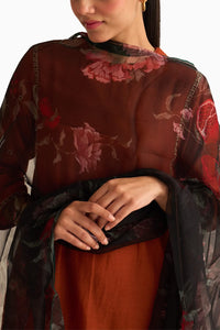 Printed organza dupatta with Anaar butas and beautifully hand crafted tassels.