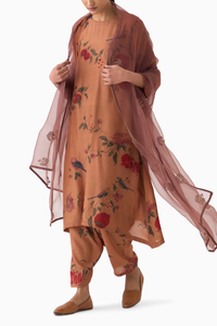 Featuring Bloome Old Rose Kurta Set by DOT. Merging Cotton Silk with an Organza Dupatta in a charming pink hue, tailored to perfection for a flattering fit. Elevate your style with this elegant ensemble.