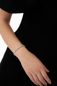 Featuring Blooming Diamante Bracelet by KAI Jewels. Soak yourself in the blooming nursery of sparkle and glam with this stunning piece of adornment. Studded with crystalline diamante, it's designed to perfection. This piece of silver elegance features blooms and rectangular baguettes embellished with quality zircon diamonds. An exquisite addition to your silver bracelet collection.