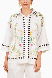 A masterpiece of craftsmanship, this half-sleeve white cotton shirt features intricate cutwork embroidery, blending tradition with modern elegance. The breathable cotton fabric ensures all-day comfort, while the delicate detailing adds an effortless charm to your wardrobe